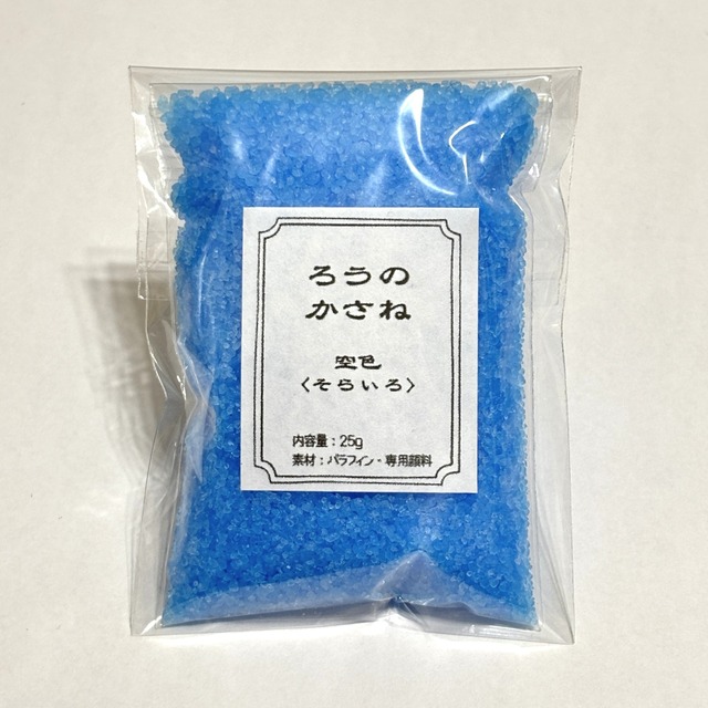 重ねるための色を楽しむワックス〈ろうのかさね〉。 日本に古くからある、色の重なりによって情景や季節感を表す美意識から着想を得た、レイヤー表現のためのカラー素材です。 一色ずつの販売なので、組み合わせも順番も自由。 選び方次第で、仕上がりの印象は大きく変わります。 火や高温の道具を使わずに制作できるため、はじめての方でも扱いやすく作業スペースを選びません。 気軽に試せて、それでいて本格的な重なりの表現が楽しめます。 透け感やにじみによって境界には自然なゆらぎが生まれ、シンプルに重ねるだけで奥行きのある仕上がりに。 色を組み合わせて世界観を広げるのも、あえて一色でミニマルにまとめるのもおすすめです。 色使いやテクニックによって、さまざまに複雑で豊かな作品が生み出される可能性を模索することもできます。 どんな景色を閉じ込めるか。 その入口になる色をお選びください。 カラー:空色(そらいろ) 内容量:25g/1袋 セット内容:サンドパラフィン×1、キャンドル芯×1、芯接着用両面テープ×1、案内書付き 素材:パラフィン、専用顔料 ※画像にある皿やボトルなどは付属しませんのでご了承ください。 【ご注意ください】 ※この商品は食品ではありません。 お子様がお口になさいませんよう、くれぐれもお気を付けくださいませ。 ※パラフィンは高温で溶け出します。 保管の環境が高温になると粒が固まる可能性があります。 ※点灯の際はかならず耐熱性のあるお皿やボトルなどに乗せてご使用ください。 ※点灯中は容器が熱くなる場合がございますので、やけどなどにお気を付けください。 ※取り扱い方についてはメニューより「安全にお使いいただくために」をご覧ください。